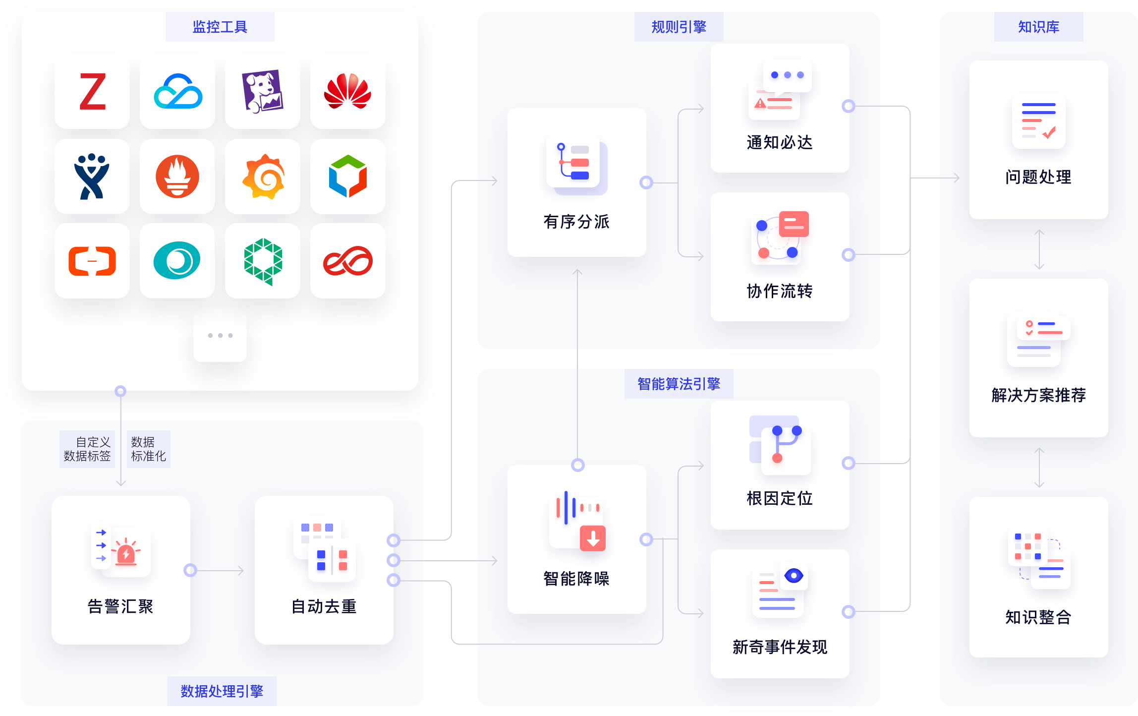 一站式告警全生命周期管理平台,提供了从监控,到异常检测告警,针对压缩后告警进行根因分析的 AIOps 闭环能力。