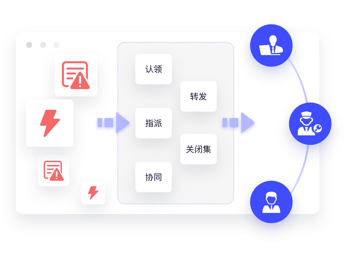 通过事件认领、指派、协同、转发、关闭集等操作,在团队成员间根据事件处理需要,进行事件流转和状况管控,落地事件管理最佳实践。
