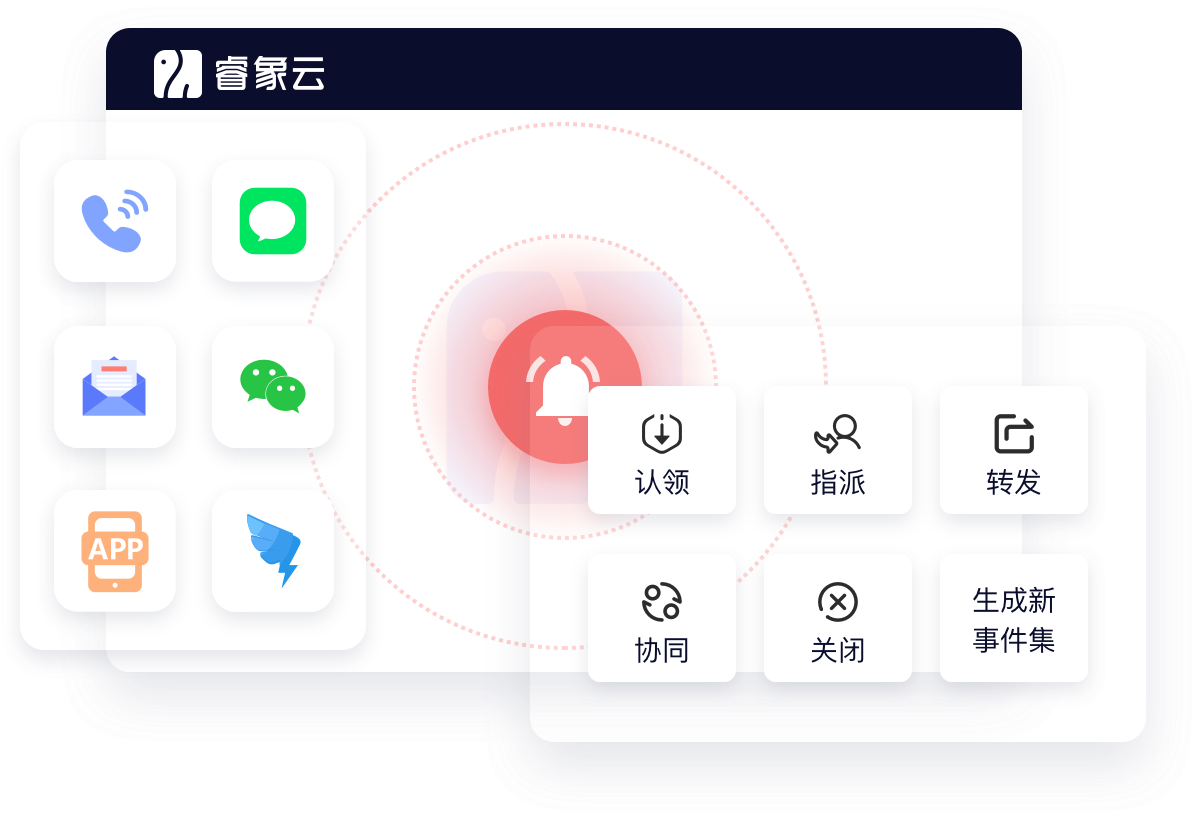 在管理控制台、移动APP、协作工具中对事件进行响应和处理,满足不同工作场景下,PC端、移动端协作的事件管理需要。