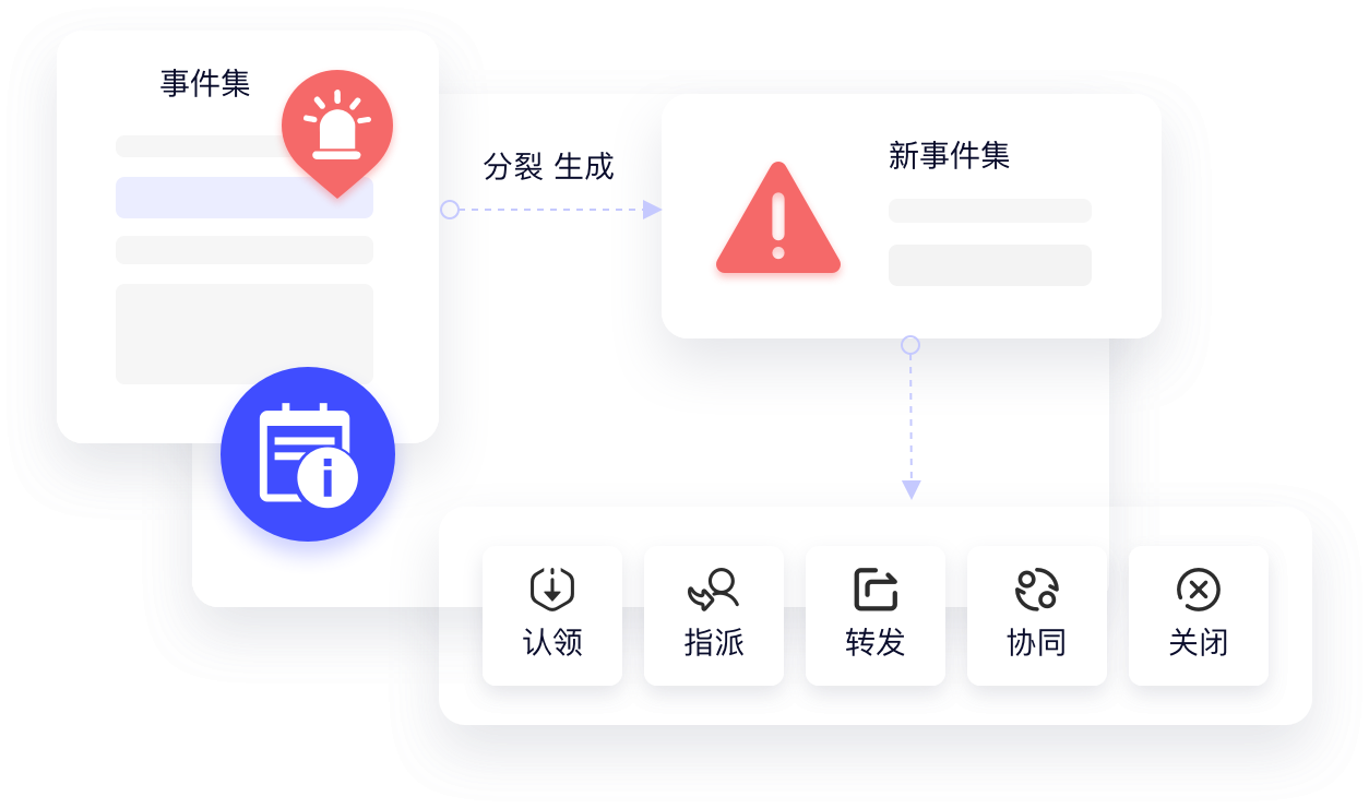 随着事件状态的不断变化发展,在现有事件集中选择一个或是多个事件,进行分裂生成新的事件集,满足更细颗粒度事件管理需求。